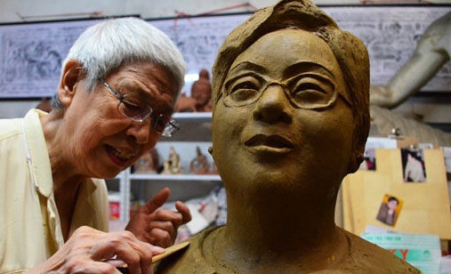2011年9月14日,雕塑家閆玉敏正在創作作家石楠塑像。