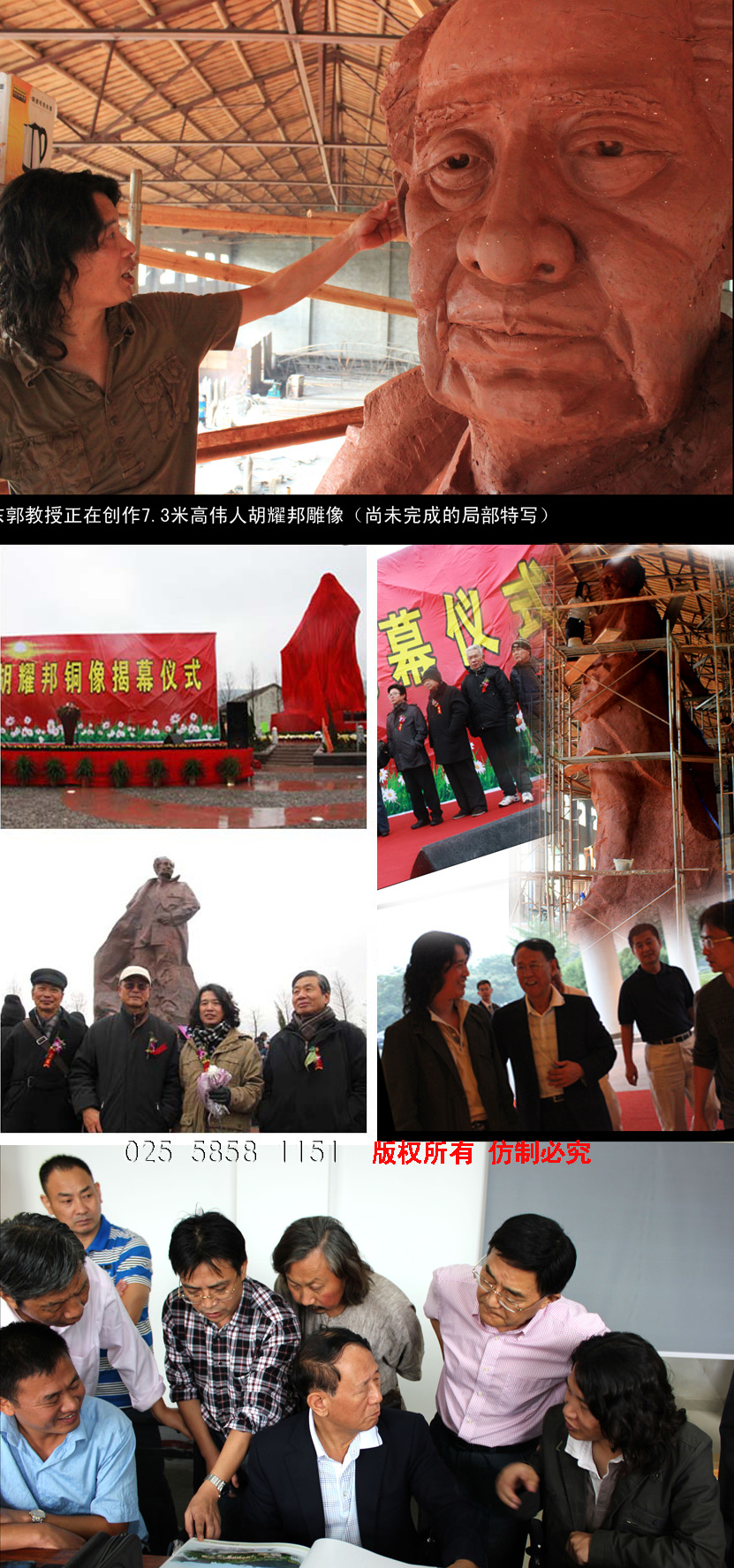 原中共中央統(tǒng)戰(zhàn)部副部長(zhǎng)、全國(guó)工商聯(lián)黨組書記胡德平和江蘇文化界人士集體合影東郭教授正在創(chuàng)作七米三高偉人胡耀邦雕像)