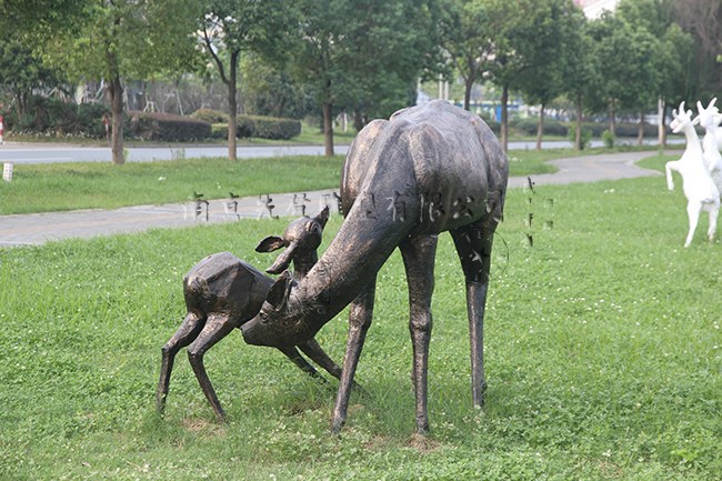 南京先登雕塑,南京雕塑廠供應玻璃鋼現貨雕塑《母子鹿》,材質有玻璃鋼、鍛銅和鑄銅;適合放置在公園、廣場、學校等,是南京雕塑的