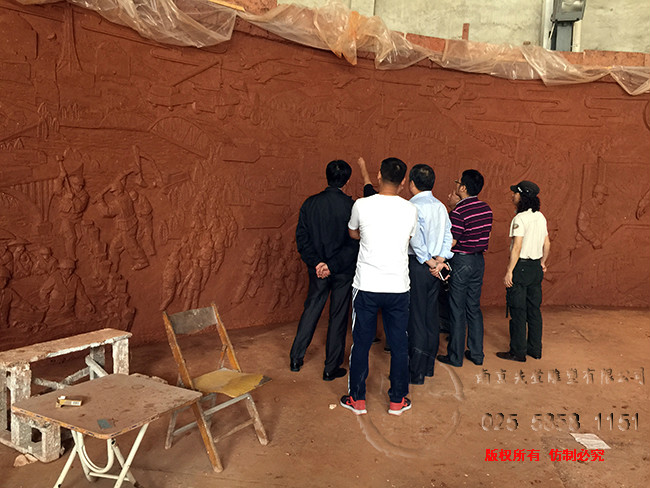 浮雕創(chuàng)作現(xiàn)場,相關(guān)各機關(guān)領(lǐng)導(dǎo)蒞臨聽取工程介紹